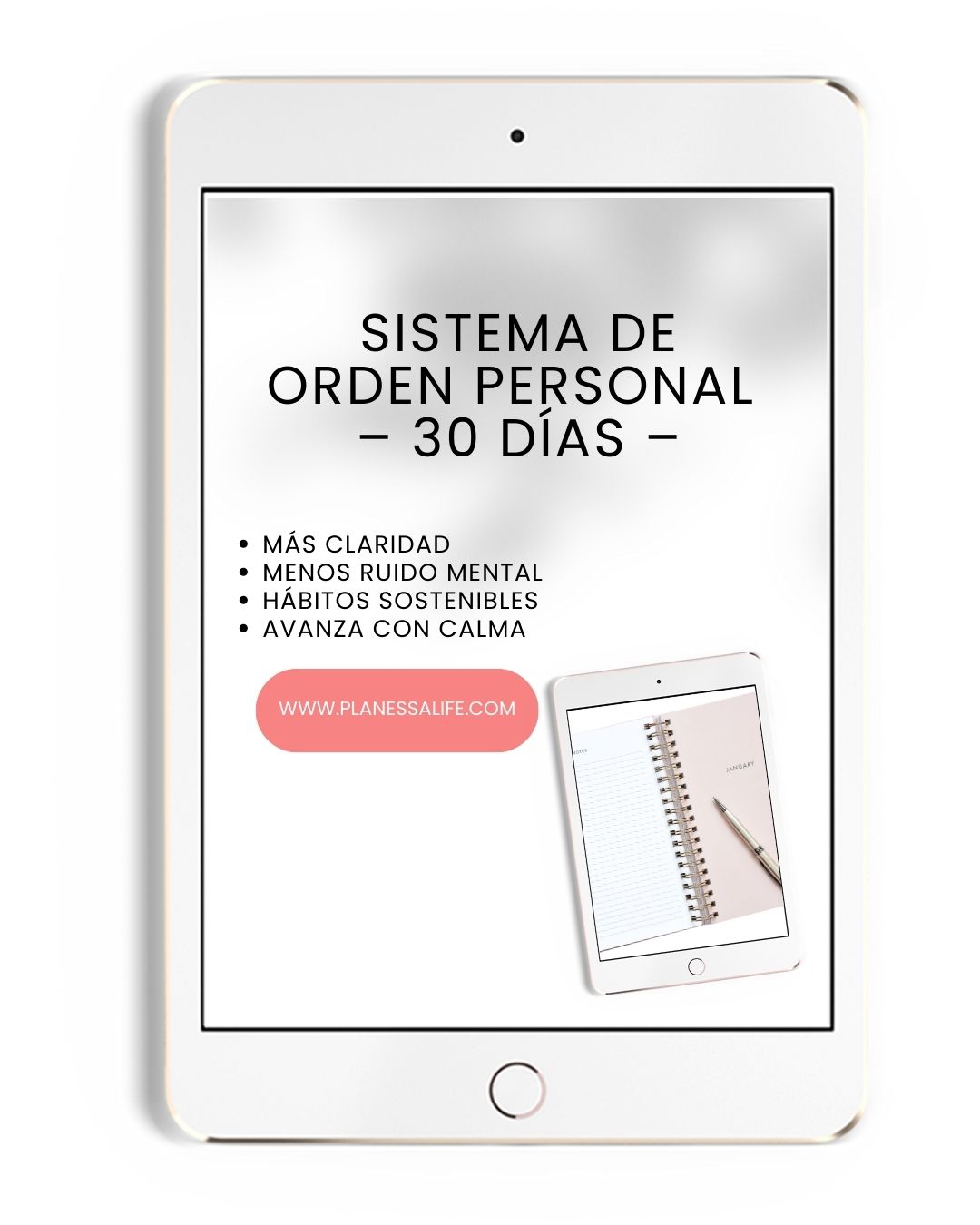 El Sistema de Orden Personal 30 días es un método digital paso a paso para ayudarte a organizar tu vida, reducir el ruido mental y crear estructura real, sin exigirte perfección ni depender de la motivación.